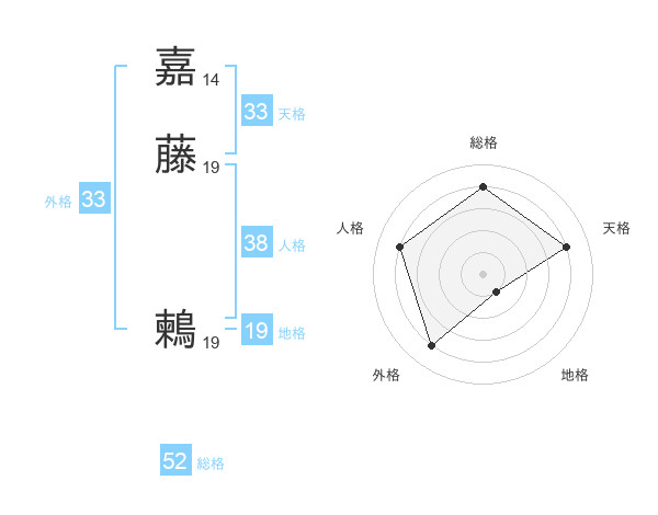 嘉藤 鶫さんを姓名の画数から五運を鑑定