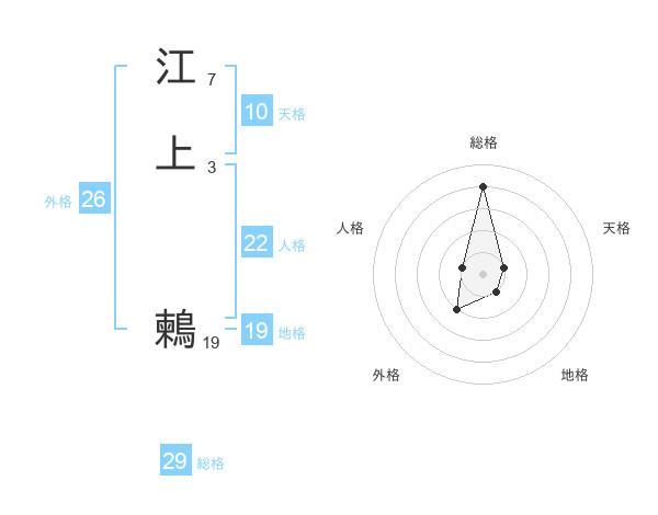 江上 鶫さんの総格は29画の4点!