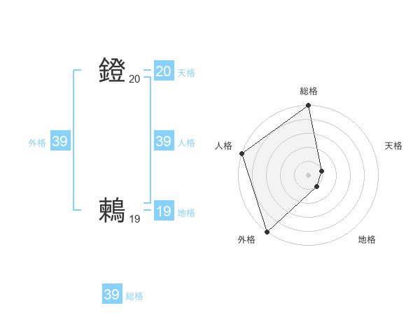 鐙 鶫さんの総格は39画の5点!
