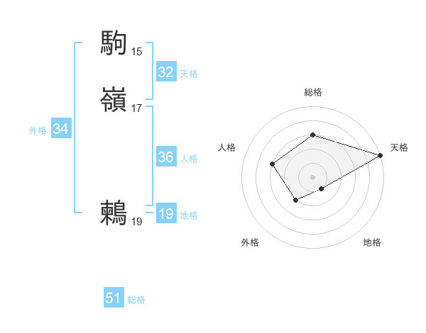 駒嶺 鶫さんの総格は51画の3点!