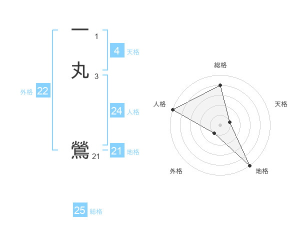 一丸 鶯さんの地格は21画の5点!