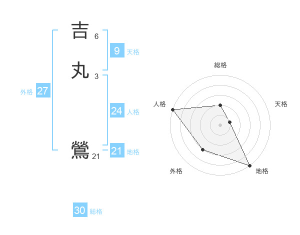 吉丸 鶯さんの総格は30画の2点!