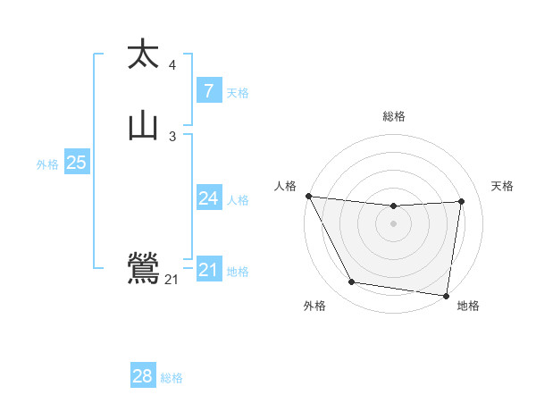 太山 鶯さんの総格は28画の1点!