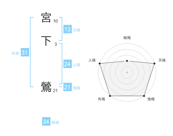 宮下 鶯さんの天格は13画の5点!