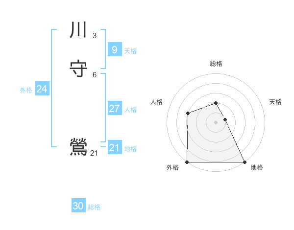 川守 鶯さんの総格は30画の2点!