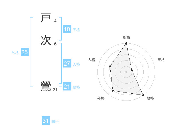戸次 鶯さんの総格は31画の5点!