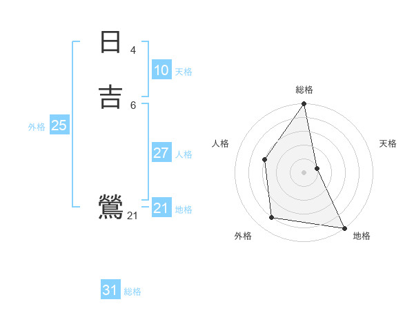 日吉 鶯さんの総格は31画の5点!
