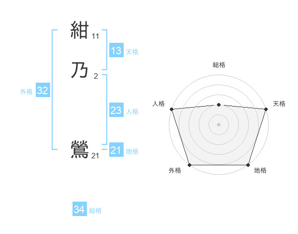 紺乃 鶯さんを姓名の画数から五運を鑑定