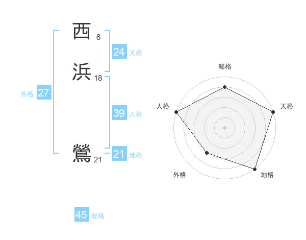 西浜 鶯さんを姓名の画数から五運を鑑定