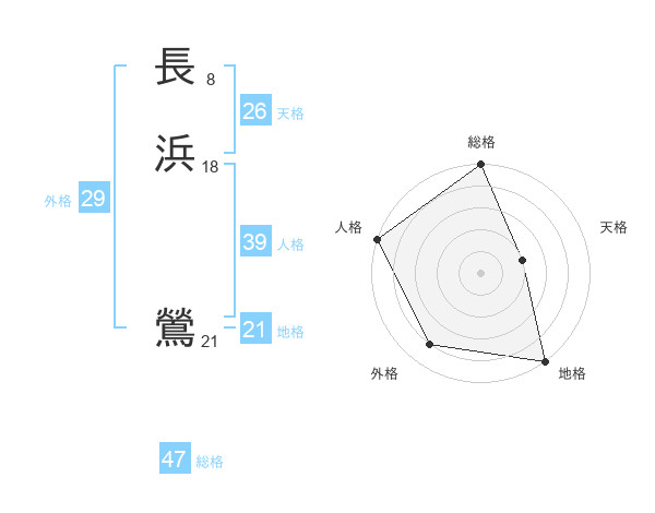 長浜 鶯さんを姓名の画数から五運を鑑定