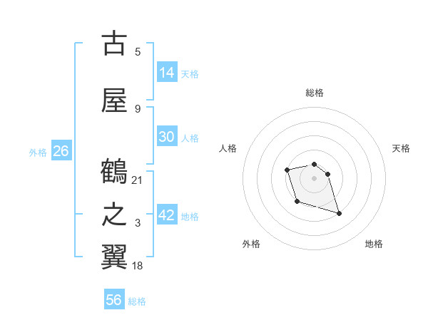 古屋 鶴之翼さんを姓名の画数から五運を鑑定