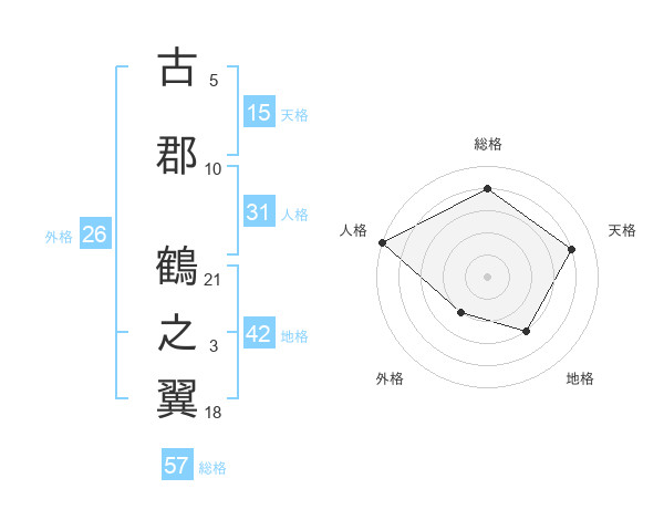 古郡 鶴之翼さんの総格は57画の4点!