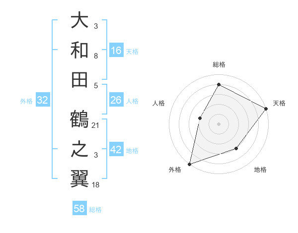 大和田 鶴之翼さんを姓名の画数から五運を鑑定