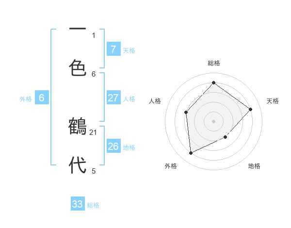 一色 鶴代さんを姓名の画数から五運を鑑定