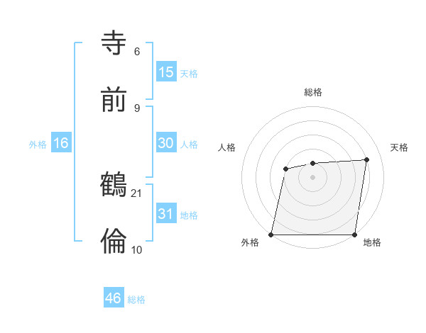 寺前 鶴倫さんの総格は46画の1点!