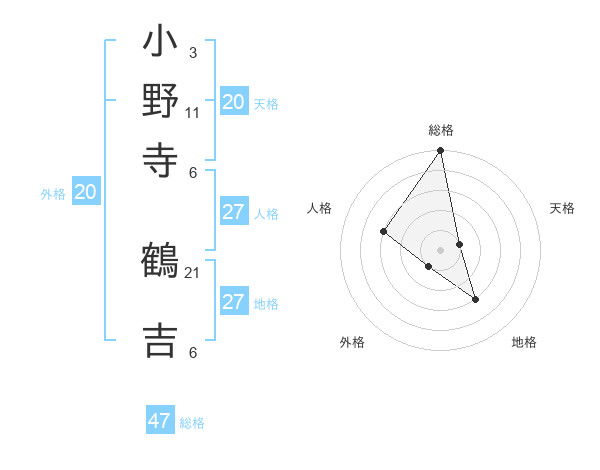 小野寺 鶴吉さんの総格は47画の5点!