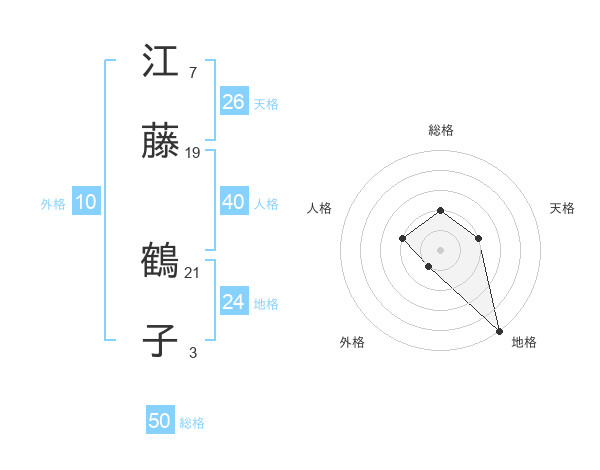 江藤 鶴子さんの総格は50画の2点!