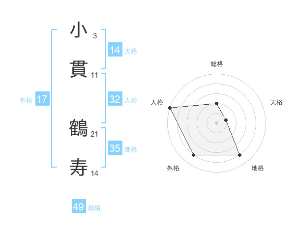 小貫 鶴寿さんを姓名の画数から五運を鑑定