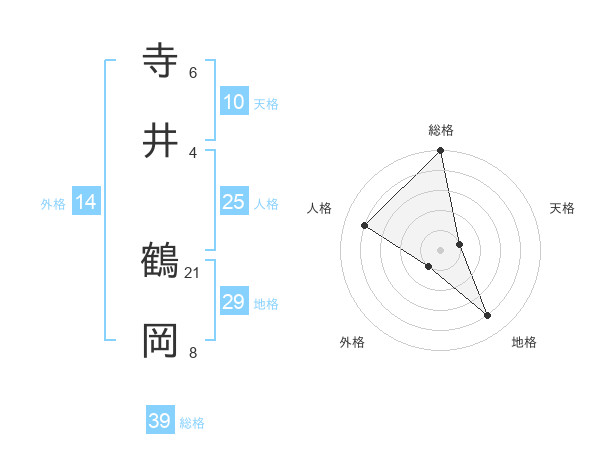 寺井 鶴岡さんの総格は39画の5点!