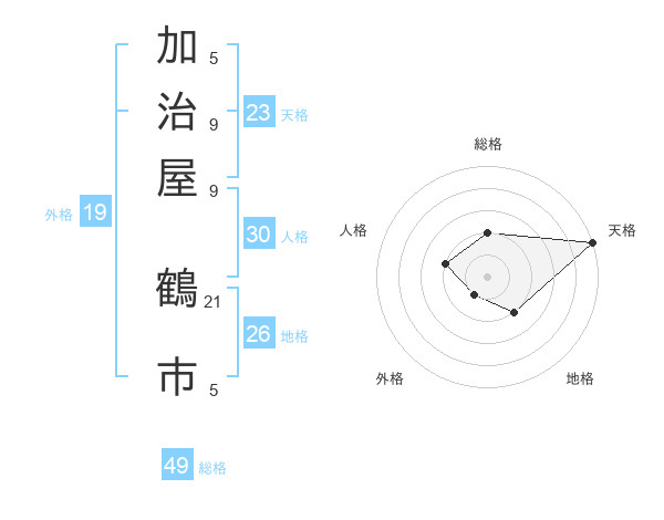 加治屋 鶴市さんを姓名の画数から五運を鑑定
