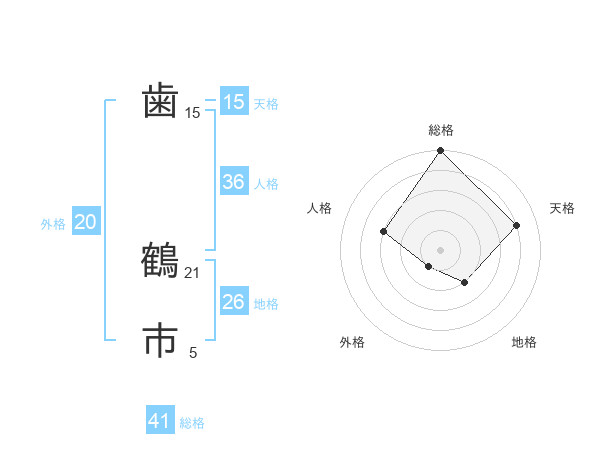 歯 鶴市さんの総格は41画の5点!