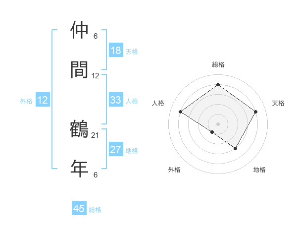 仲間 鶴年さんの総格は45画の4点!