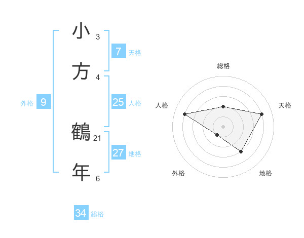小方 鶴年さんの総格は34画の2点!