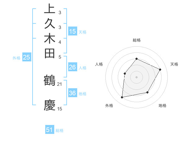 上久木田 鶴慶さんを姓名の画数から五運を鑑定