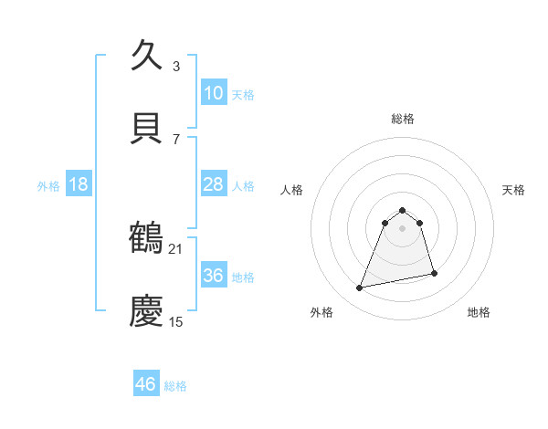 久貝 鶴慶さんを姓名の画数から五運を鑑定
