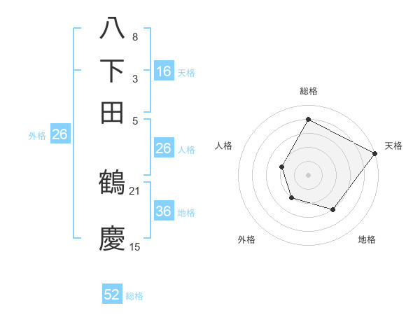 八下田 鶴慶さんの総格は52画の4点!