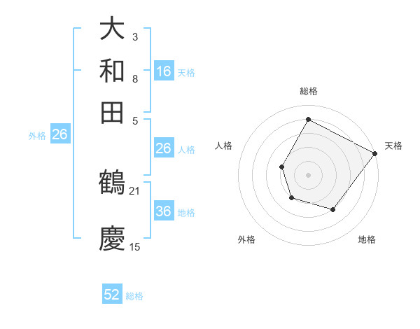 大和田 鶴慶さんの総格は52画の4点!