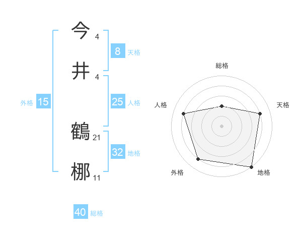 今井 鶴梛さんを姓名の画数から五運を鑑定