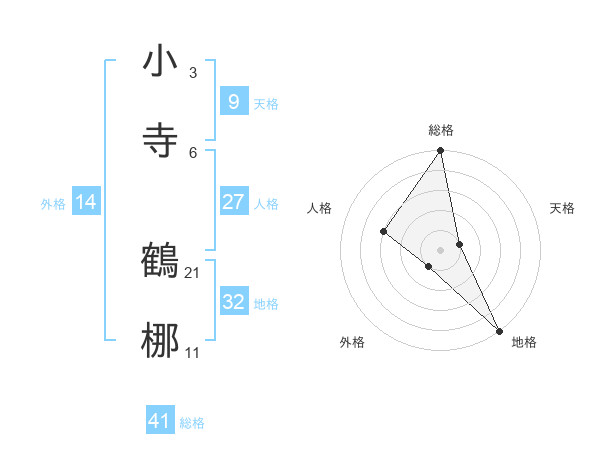 小寺 鶴梛さんを姓名の画数から五運を鑑定