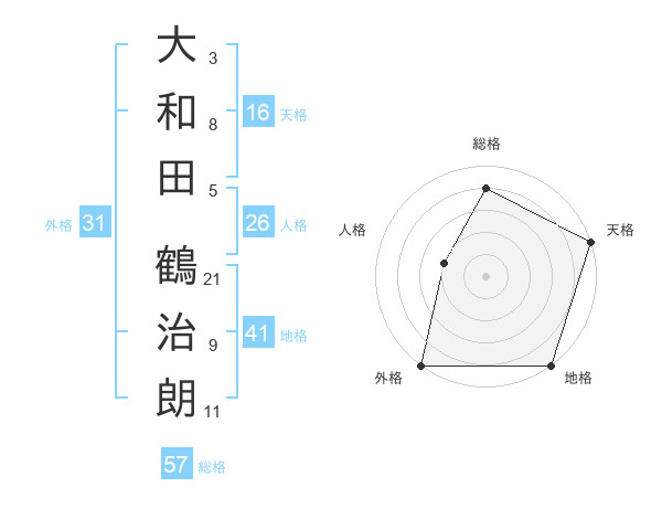 大和田 鶴治朗さんを姓名の画数から五運を鑑定