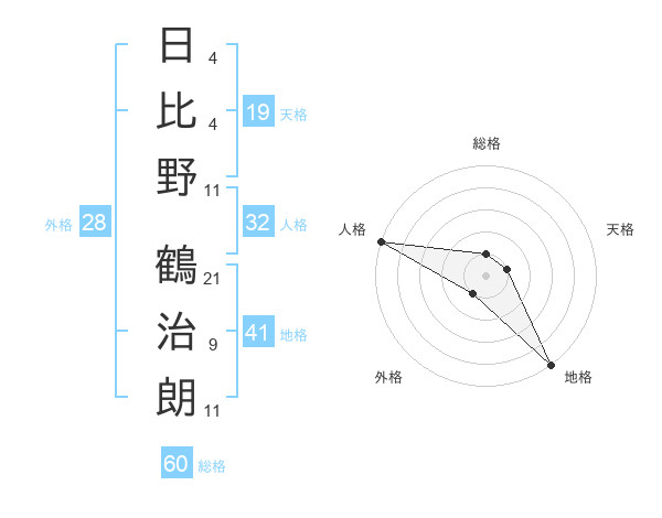 日比野 鶴治朗さんを姓名の画数から五運を鑑定