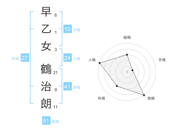 早乙女 鶴治朗さんの名前の鑑定結果は!