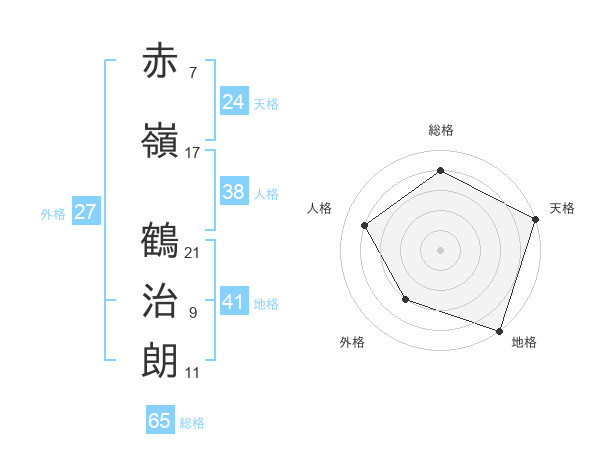 赤嶺 鶴治朗さんの総格は65画の4点!