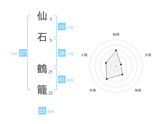 仙石 鶴籠さんを姓名の画数から五運を鑑定