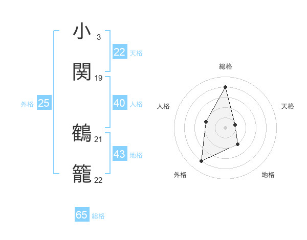 小関 鶴籠さんの総格は65画の4点