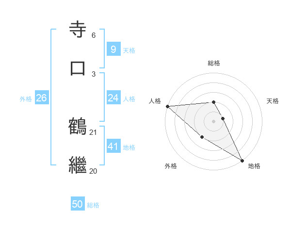 寺口 鶴繼さんを姓名の画数から五運を鑑定
