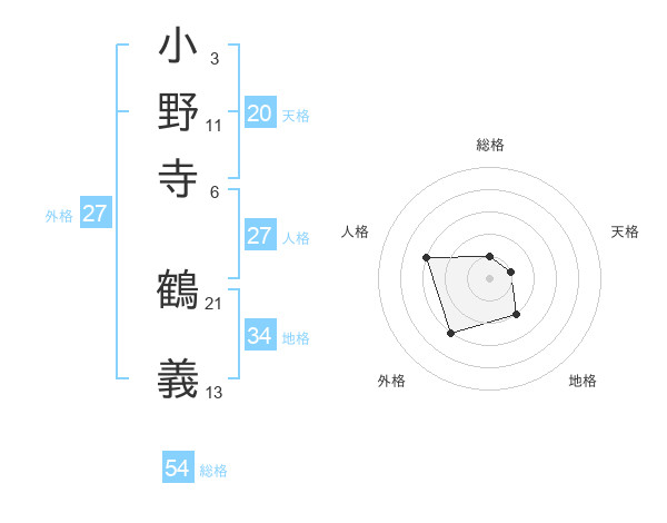 小野寺 鶴義さんの天格は20画の1点!