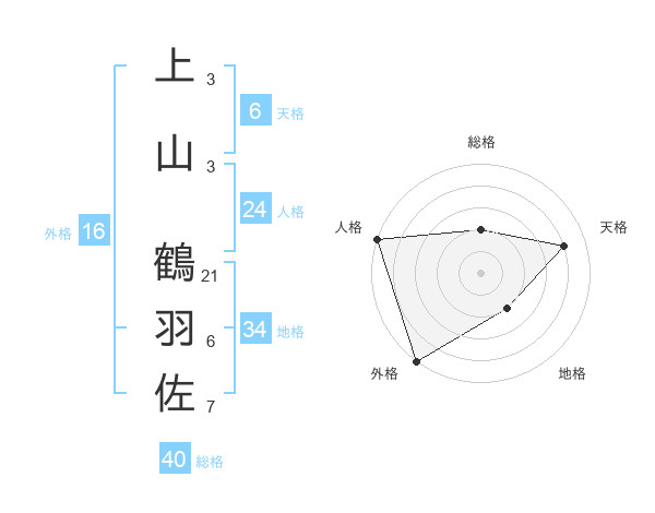 上山 鶴羽佐さんを姓名の画数から五運を鑑定
