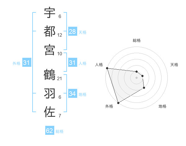 宇都宮 鶴羽佐さんの外格は31画の5点!
