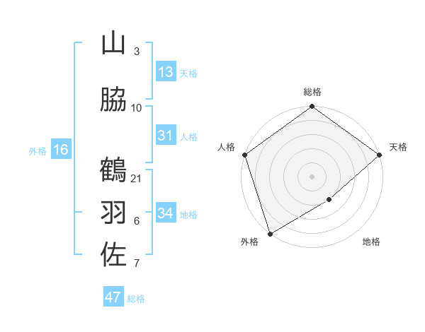 山脇 鶴羽佐さんの総格は47画の5点!