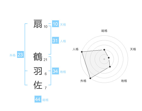 扇 鶴羽佐さんを姓名の画数から五運を鑑定