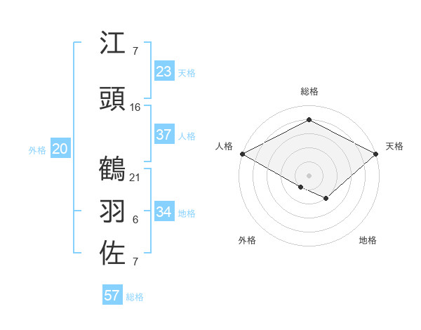 江頭 鶴羽佐さんの総格は57画の4点!