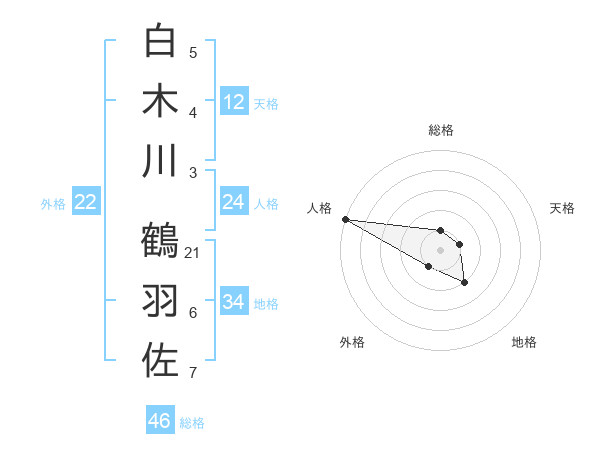 白木川 鶴羽佐さんを姓名の画数から五運を鑑定