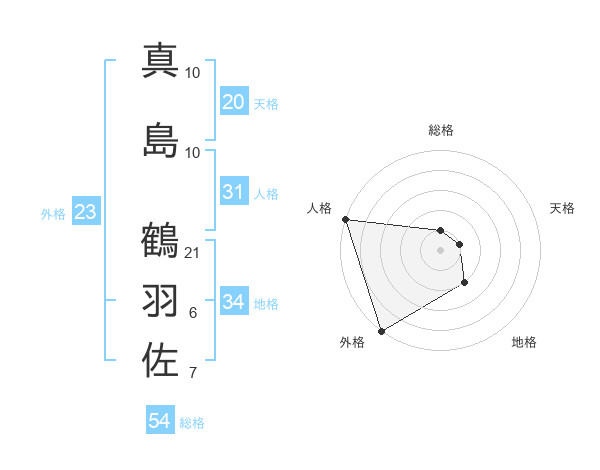 真島 鶴羽佐さんを姓名の画数から五運を鑑定