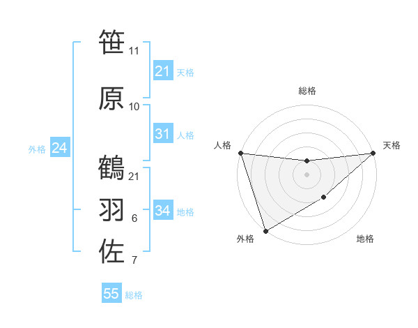 笹原 鶴羽佐さんを姓名の画数から五運を鑑定