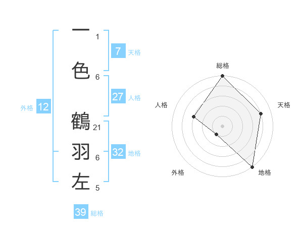 一色 鶴羽左さんを姓名の画数から五運を鑑定
